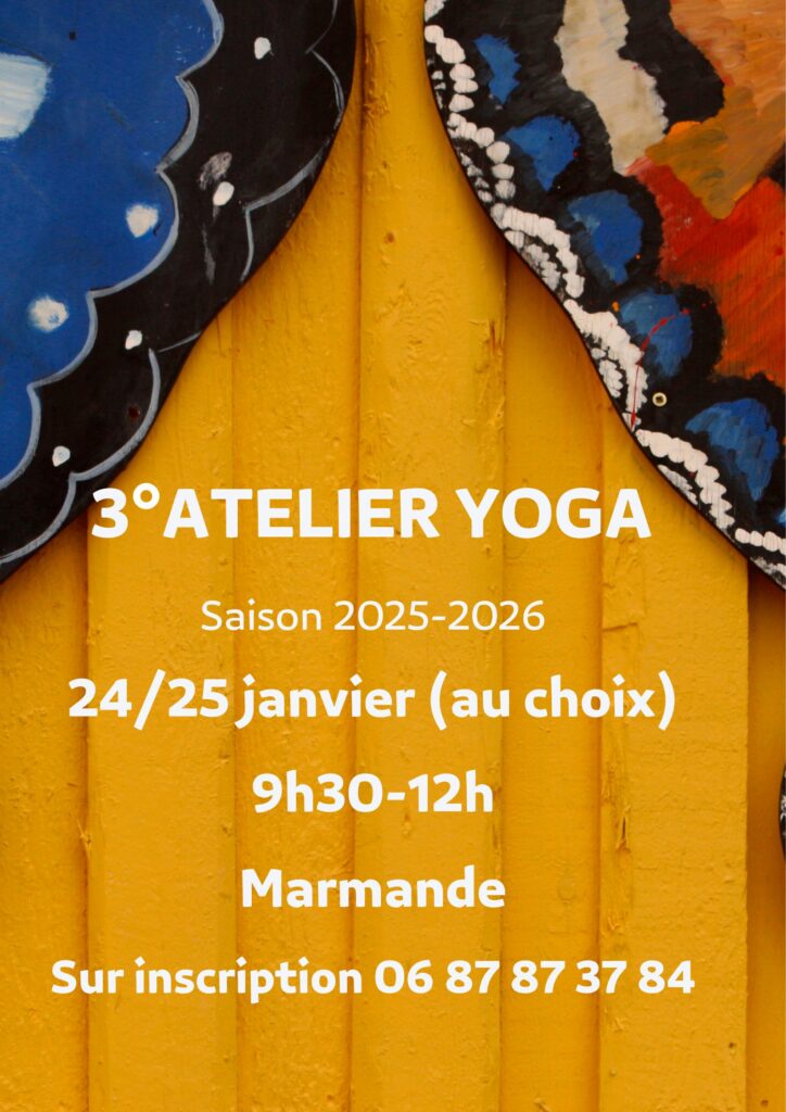 Le 3° atelier de de la saison 2025-2026 de Prâna Yoga aura lieu samedi 24 et/ou dimanche 25 janvier (au choix) de 9h30 à 12h, à Marmande. C’est ouvert et accessible à tous, débutants ou pratiquants, au tarif de 25€ sur inscription. La pédagogie proposée est progressive et adaptée à chacun dans le respect de ses capacités et limites propre.